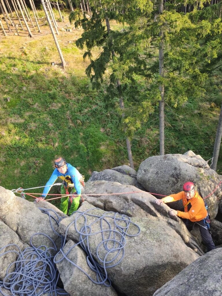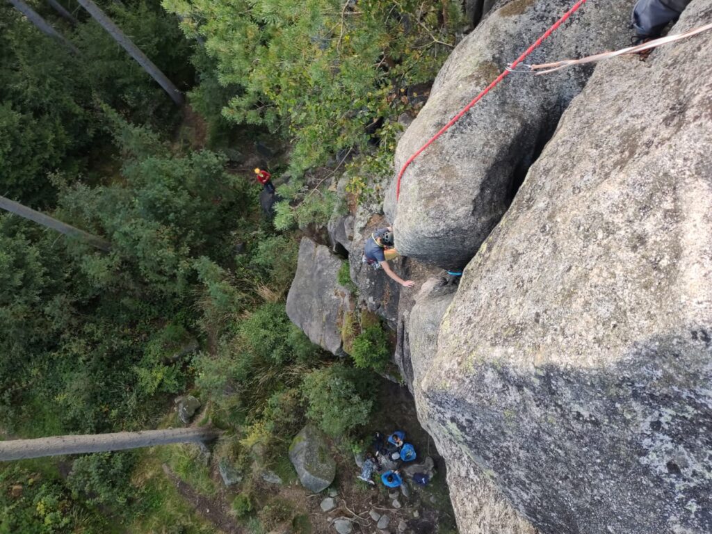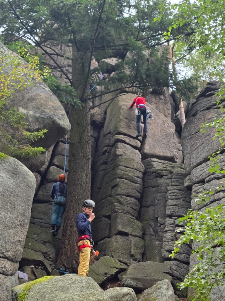 W weekend 12-14.09.2025 wyjechaliśmy na coroczny wypad unifikacyjny pod hasłem „Trady w Rudawach”. Jak zwykle też definicja „tradów” rozszerzona została o wspinaczkę na drogach ubezpieczonych, a definicja „Rudaw” – o pobliskie Góry Sokole. 😉